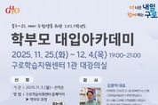 서울복지타임즈 이재연 기자 | 구로구가 예비 수험생 학부모를 대상으로 ‘2027학년도 학부모 대입 아카데미’를 운영한다. 구는 변화하는 대입 제도와 입시 환경 속에서 학부모가 정확한 정보를 이해하고, 자녀의 진로·진학을 체계적으로 지원할 수 있도록 매년 학부모 대입 아카데미를 운영하고 있다. 교육은 구로구 관내 예비 수험생(중학교 3학년∼고등학교 2학년)을 둔 학부모 50명을 대상으로 구로학습지원센터 1관 대강의실에서 진행된다. 이번 프로그램은 △11월 25일 ‘고교학점제 대비 및 2028학년도 대입 제도 분석’ △11월 27일 ‘학종 성공을 위한 과목 선택과 내신 1등급 만들기 공부 비법’ △12월 2일 ‘2027학년도 대입 전형의 이해와 수시모집 성공전략 세우기’ △12월 4일 ‘주제탐구활동을 하면 학생부가 왜 특별해 보일까?’ 등 총 4회에 걸쳐 매회 오후 7시부터 9시까지 2시간 동안 이어진다. 강의는 진학 멘토 ‘신의 한 수’ 입시전략연구소 김용택 대표가 나서 학부모가 자녀와 함께 실천할 수 있는 현실적인 진학 지도 방안과 대입 준비에 필요한 핵심 정보를 전달할 예정이다. 참여