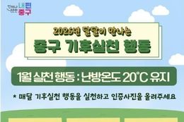 서울복지타임즈 이재연 기자 | 서울 중구가 올해부터 '달달이 기후실천 행동'을 운영하며 주민들의 녹색생활 실천의지를 북돋는다. 올해 첫 미션은 ‘난방온도 20℃ 유지하기’고, 다음달 미션은 '대중교통 이용하기'다. ‘달달이 기후실천 행동’은 기후위기 대응을 일상에서부터 시작하자는 취지로 마련됐다. 에너지 절약, 일회용품 줄이기 등 누구나 생활 속에서 쉽게 실천할 수 있는 행동을 매달 하나씩 제시해, 주민들이 자연스럽게 친환경 습관을 만들어갈 수 있도록 돕는다. 구는 겨울철 난방 사용이 급증하는 시기인 만큼, 1월 과제를 ‘난방온도 20℃ 유지하기’로 정했다. 난방온도를 적정 수준으로 유지해 에너지 사용을 줄이고 온실가스 배출을 감축하기 위해서다. 주민들이 부담 없이 참여할 수 있도록 꿀팁도 알려준다. △창문에 단열재 부착하기 △두꺼운 커튼 활용하기 △문풍지로 찬바람 차단하기 △내복이나 양말로 체온 유지하기 △난방기 주변 정리해 열 순환 효율 높이기 △사용하지 않는 공간 난방 차단하기 등을 실천하면 환경보호는 물론, 난방비까지 아낄 수 있다. 구는 다양한 기후실천 행동 주제를 월별로 선정했다. 계절과