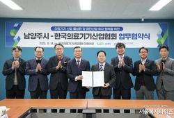 서울복지타임즈 이재연 기자 | 남양주시는 11월 14일 사단법인 한국의료기기산업협회(회장 김영민)에서 왕숙 도시첨단산업단지의 성공적 조성과 의료기기 산업 활성화를 위한 업무협약(MOU)을 체결했다고 밝혔다. 이번 협약은 남양주시가 산업협회와의 맺은 협약의 첫 사례로, 의료기기를 비롯한 인공지능(AI)·첨단 제조 산업 등 첨단산업 전반의 투자유치와 협력 기반을 강화하기 위한 중요한 계기가 될 전망이다. 이날 협약식에는 주광덕 시장을 비롯해 김영민 회장 등 관계자들이 참석했다. 양 기관은 왕숙 도시첨단산업단지에 의료기기 기업 유치와 투자를 촉진하고, 산업 육성·판로개척·해외진출 등 전반에 걸쳐 협력하기로 했다. 또한 첨단 제조(의료기기) 산업 기반 구축과 전문인력 양성에도 힘을 모을 예정이다. 인공지능(AI)·바이오 등 융합기술 기반의 의료기기 산업은 성장 가능성이 높은 미래 핵심 산업으로, 시는 이번 협약을 계기로 첨단산업 유치 전략에 박차를 가할 계획이다. 아울러 이번 협약은 왕숙지구 투자유치, 청년 일자리 창출을 통한 지역경제 활성화에 기여할 것으로 기대된다. 또한 협회의 전문성과 시의 산업 인프