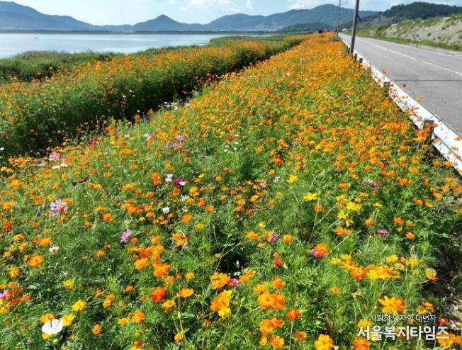 서울복지타임즈 이재연 기자 | 진도군은 나리방조제(3.2km) 일원에 조성한 꽃길에 가을꽃들이 만개해 주민과 관광객들의 큰 호응을 얻고 있다고 밝혔다.