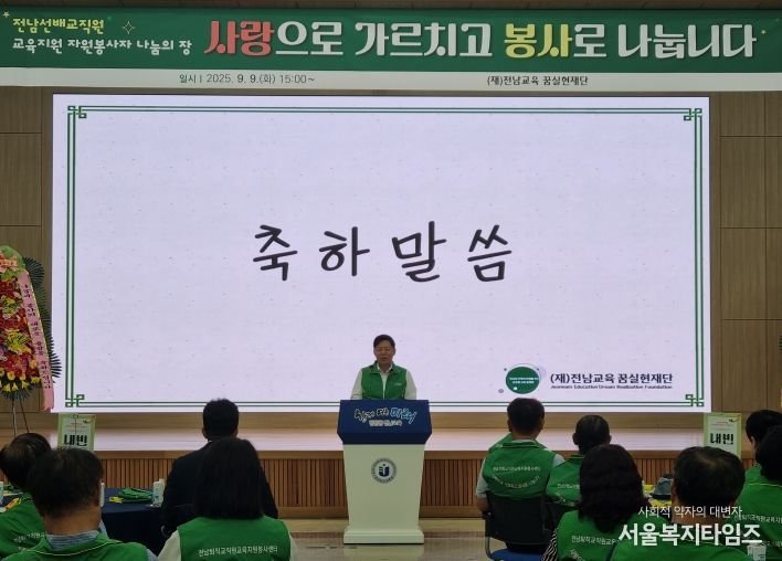 서울복지타임즈 이재연 기자 | 전라남도의회 교육위원회 김정희 위원장은 9월 9일, 전라남도교육청 2층 대회의실에서 열린 선배교직원 교육지원봉사센터 나눔의 장 행사에 참석해 축사를 전했다.