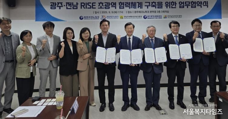 서울복지타임즈 이재연 기자 | 광주·전남RISE센터는 광주테크노파크, 전남테크노파크, 전남인재평생교육진흥원과 광주·전남 RISE 초광역 지·산·학·연 협력체계 구축을 위해 지난 9일 광주테크노파크에서 업무협약을 했다고 밝혔다.
