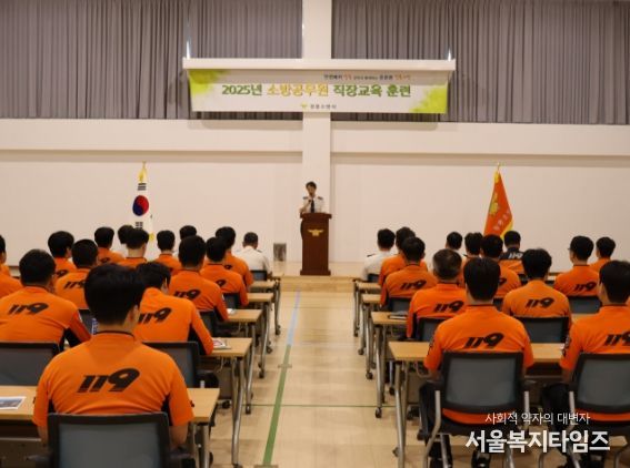 서울복지타임즈 이재연 기자 | 장흥소방서는 9월 8일부터 10일까지 본서 다목적강당에서 직원 144명이 참여한 가운데 직장교육훈련을 실시했다.