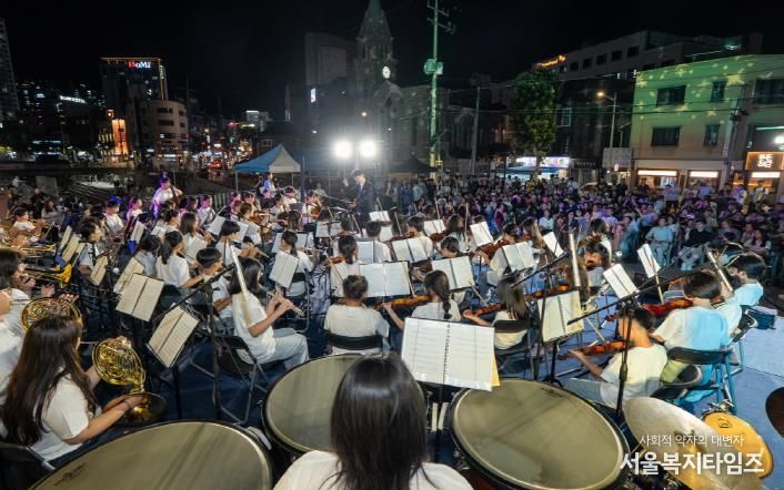 서울복지타임즈 이재연 기자 | 서울 성북구 월곡청소년센터가 주최한 KYF뮤즈 청소년 오케스트라 미니콘서트 ‘가을밤 뮤직 페스타’가 지난 9월 7일 성북구청 바람마당 야외무대에서 열렸다. 이번 공연은 청소년 단원들의 순수한 열정과 음악적 기량을 느낄 수 있는 무대가 됐다