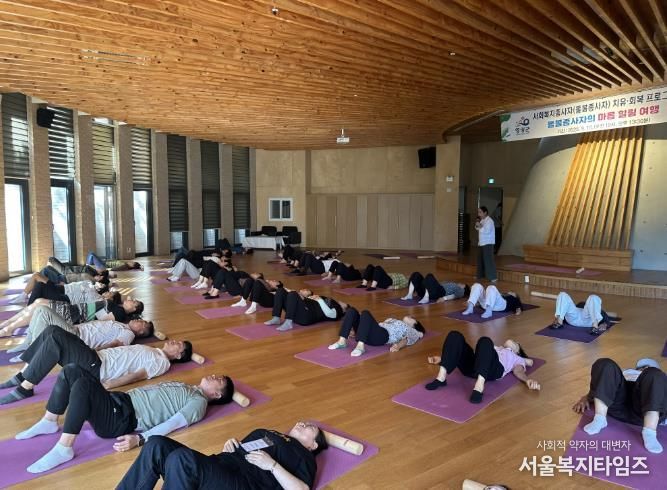 ‘돌봄종사자의 마음 힐링 여행’을 주제로 진행된 이날 행사에서는 굴림대 명상, 요가명상, 나만의 감성 향수 만들기 등 다양한 체험이 마련돼 참가자들은 바쁜 일상 속에서 잠시 마음을 내려놓고 정서적 안정을 되찾으며 활력을 충전하는 뜻깊은 시간을 보냈다.
