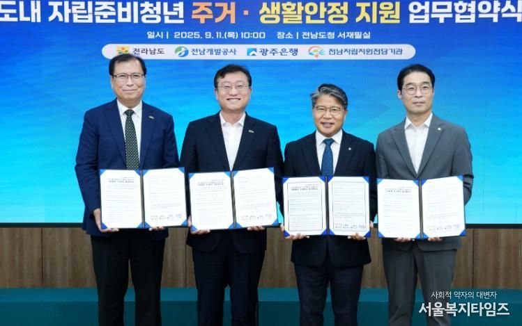 서울복지타임즈 이재연 기자 | 전라남도는 전남개발공사, 광주은행, 전남자립지원전담기관과 11일 도청 서재필실에서 지역 자립준비청년의 주거와 생활 안정을 위한 전국 최초의 통합 주거복지 업무협약을 했다고 밝혔다.
