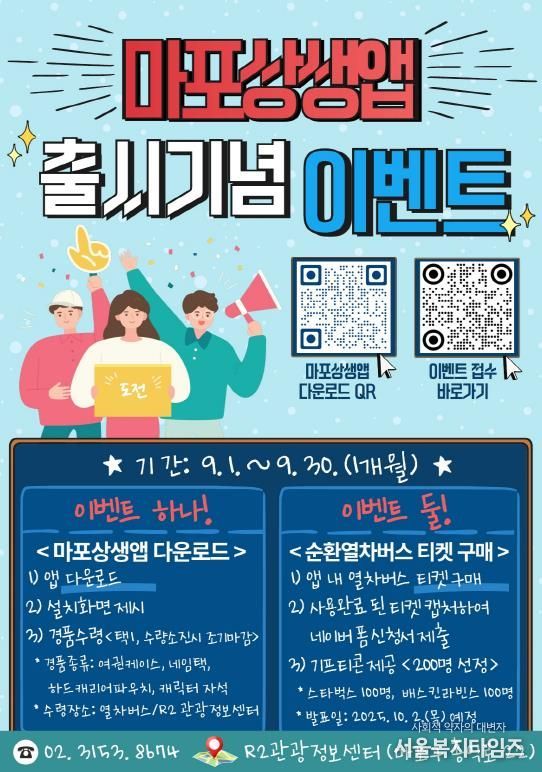 박강수 마포구청장은 “마포상생앱은 단순한 편의 앱을 넘어 지역 상권과 주민이 함께 성장하는 디지털 플랫폼”이라며, “이번 이벤트를 통해 많은 분들이 앱을 직접 사용해 보시고, 다양한 혜택도 챙기며 지역 상권 활성화에도 힘을 보태 주시길 바란다”고 말했다.