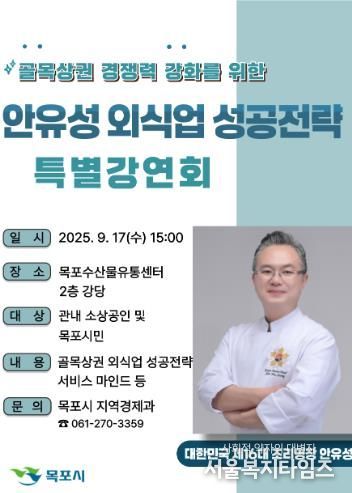 서울복지타임즈 이재연 기자 | 목포시는 골목상권의 경쟁력 강화를 위해 ‘대한민국 제16대 조리명장 안유성’을 초청, 특별강연회를 연다.