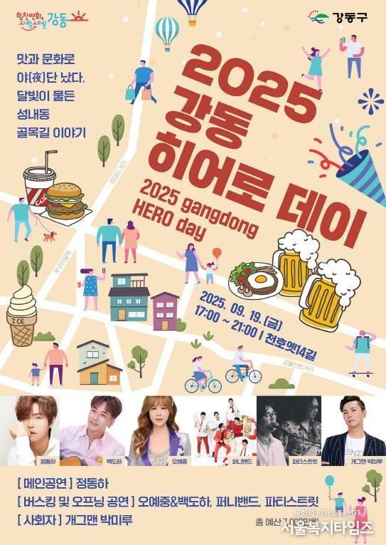 서울복지타임즈 이재연 기자 | 강동구가 오는 9월 19일 오후 5시부터 9시까지 성내동 천호옛길 일대에서 지역 골목상권 활성화를 위한 골목 축제 ‘2025 강동히어로 데이!!’를 개최한다고 15일 밝혔다.