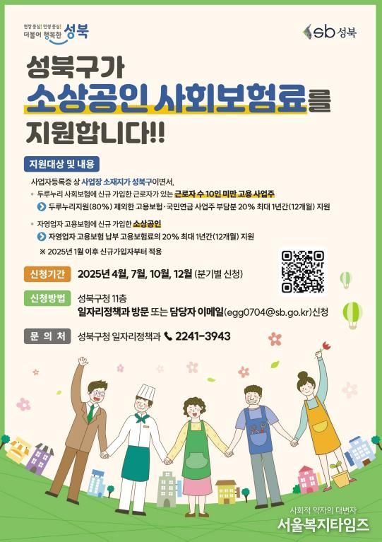 서울복지타임즈 이재연 기자 | 서울 성북구가 오는 10월 13일부터 17일까지 2025년 ‘성북구 소상공인 사회보험료 지원사업’ 3분기 신청 접수를 진행한다.