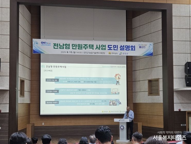 강진원 강진군수는 “이번 설명회는 군민들이 전남형 만원주택의 가치와 필요성에 깊이 공감한 뜻깊은 자리였다”며 “앞으로도 청년과 신혼부부가 안심하고 정착할 수 있는 주거 환경 조성을 위해 만원주택 사업을 차질 없이 추진하겠다”고 말했다.