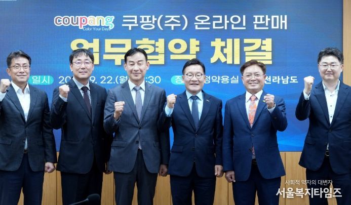 서울복지타임즈 이재연 기자 | 전라남도는 22일 도청 정약용실에서 쿠팡㈜, 전남도상인연합회와 함께 ‘전통시장 온라인 판로 확대를 위한 업무협약’을 했다고 밝혔다.