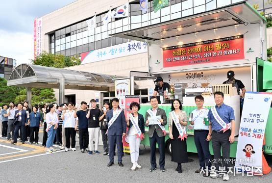 서울복지타임즈 이재연 기자 | 울산 중구가 9월 22일 낮 12시 중구청 본관 입구에서 전 직원을 대상으로 ‘청렴 한 잔할래요’ 청렴 커피차 홍보활동(캠페인)을 진행했다.