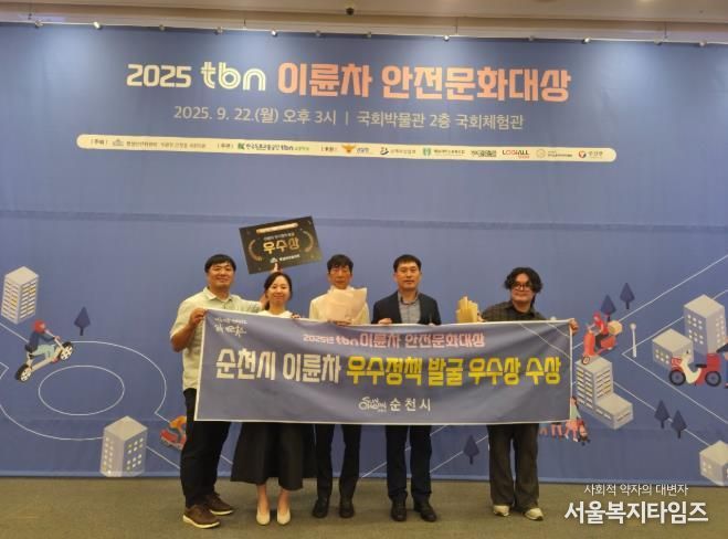서울복지타임즈 이재연 기자 | 순천시는 지난 22일 서울 국회박물관에서 열린 '2025 tbn 이륜차 안전문화대상' 시상식에서 이륜차 우수정책 발굴 부문 우수상을 수상했다고 밝혔다.