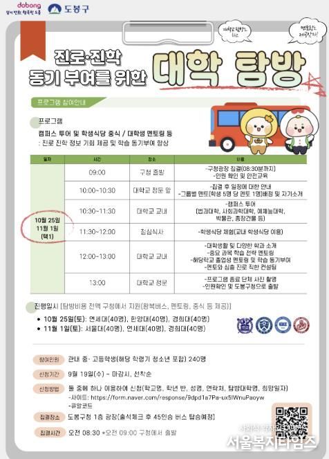 서울복지타임즈 이재연 기자 | 서울 도봉구가 지역 내 중‧고등학교 학생에게 ‘진짜 캠퍼스 라이프’를 알려준다.