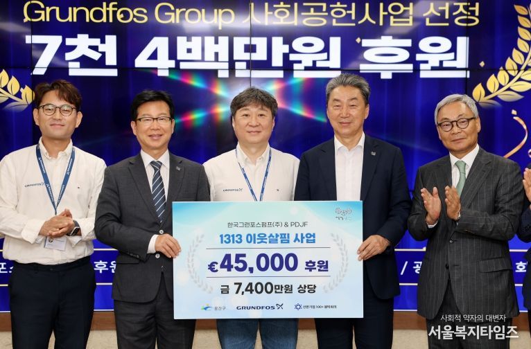 한국그런포스펌프㈜와 Poul Due Jensen재단(Grundfos Foundation)은 광산구 1313 이웃살핌 사업에 3년간 총 4만 5,000유로(한화 약 7,400만 원)를 지원하며, 국내에서는 광산구가 유일하게 선정됐다.