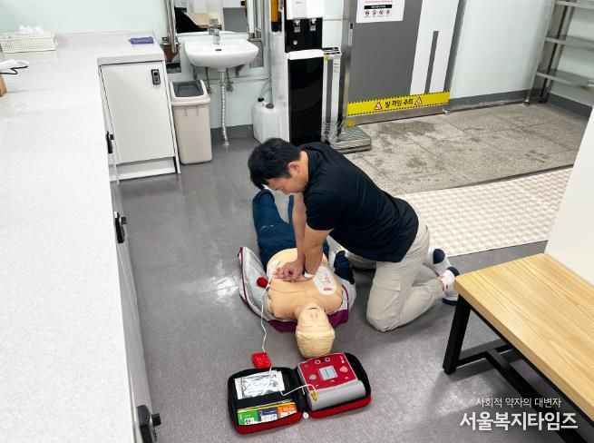 이번 훈련은 이용자가 남자 탈의실 내에서 심정지로 쓰러진 상황을 가정하여 진행됐으며, 실제상황 못지 않은 긴장감 속에서 신속한 초기 대응과 협력 체계를 점검하는 계기가 됐다.
