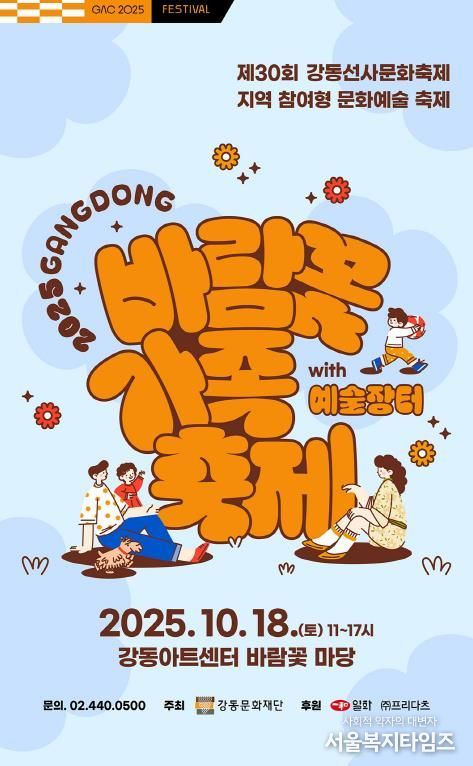 서울복지타임즈 이재연 기자 | 강동문화재단은 오는 10월 18일 오전 11시부터 오후 5시까지, 강동아트센터 바람꽃마당에서 '2025 강동 바람꽃 가족 축제 · 예술장터'를 개최한다고 밝혔다.