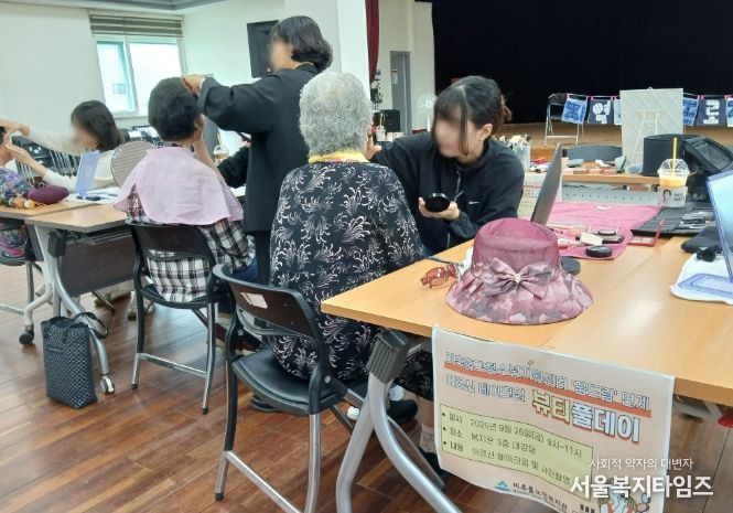 서울복지타임즈 이재연 기자 | 인천 미추홀구학교밖청소년지원센터는 지난 26일 직업훈련을 받은 학교 밖 청소년 6명이 어르신을 대상으로 메이크업과 추억을 남길 수 있는 기념사진 촬영을 진행했다.