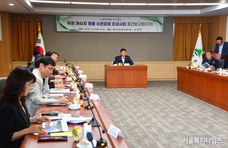 서울복지타임즈 이재연 기자 | 울산 울주군이 29일 군청 비둘기홀에서 이순걸 군수와 관계 공무원 등이 참석한 가운데 ‘두현저수지 명품 수변공원 조성사업 실시설계용역’ 2차 중간보고회를 개최했다.
