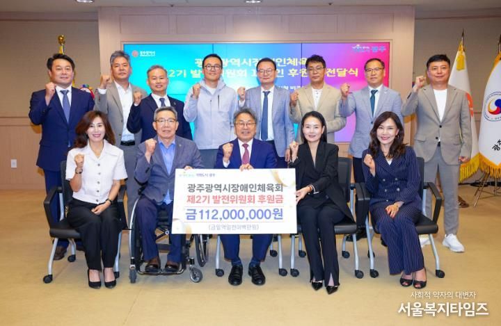 광주시장애인체육회 제2기 발전위원회는 장애인체육의 경쟁력 강화를 위해 구성된 민간 후원 조직으로, 지역 기업과 일반 후원인 100명이 자발적으로 100만원씩 후원금을 모아 총 1억1200만원을 조성, 이날 후원금을 전달했다.