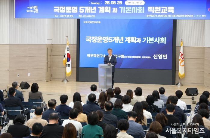 서울복지타임즈 이재연 기자 | 구로구가 29일 구청 강당에서 전 직원을 대상으로 ‘기본사회 교육’을 실시했다.