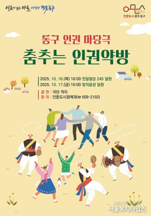 서울복지타임즈 이재연 기자 | 광주 동구는 제22회 충장축제 기간인 오는 10월 16~17일 전일빌딩245과 빛의 읍성 일원에서 ‘인권 마당극’을 선보인다고 밝혔다.