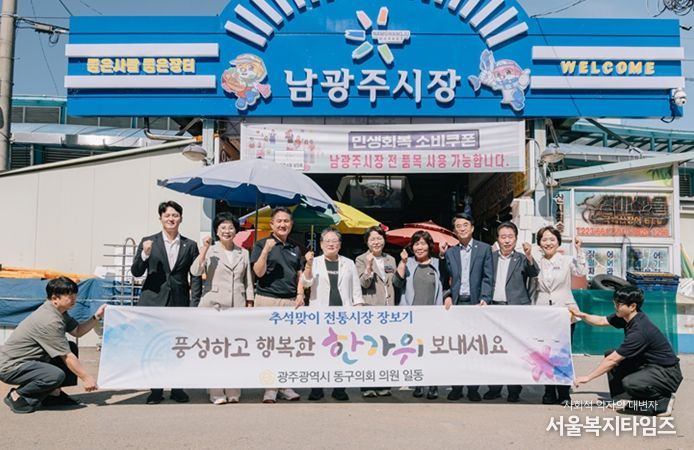 서울복지타임즈 이재연 기자 | 광주광역시 동구의회는 10월 1일 추석을 앞두고 지역 경제 활성화를 위해 대인시장, 남광주시장, 산수시장에서 동구랑페이를 활용해 ‘전통시장 장보기 행사’를 진행했다. 이번 행사는 고물가와 소비 위축으로 어려움을 겪는 전통시장의 활력 회복을 돕고, 현장 중심의 소통을 강화하기 위해 마련됐다.