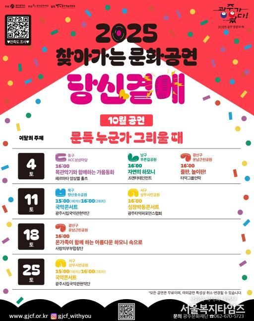 서울복지타임즈 이재연 기자 | 광주문화재단 ‘찾아가는 문화공연 '당신곁에'’ 10월 공연이 오는 4일부터 본격 시작한다.