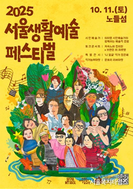 서울복지타임즈 이재연 기자 | 서울문화재단(대표이사 송형종)은 오는 11일 오후 1시부터 8시까지 한강 노들섬에서 '2025 서울생활예술페스티벌'을 개최한다. ‘예술로 물들이는 가을, 생활로 스며드는 예술’을 주제로, 서울시 문화정책인 ‘문화약자와 동행하는 동행축제, 시민과 함께하는 문화도시 조성’에 발맞춰, 시민이 주인공이 되는 시민참여형 생활예술축제로 선보인다.