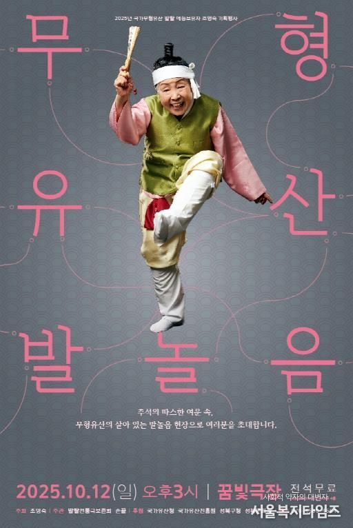 10월 12일 오후 3시 성북구 꿈빛극장(성북구 길음로7길 20 서울성북미디어문화마루 4층)에서 펼쳐지는 국가무형유산 발탈 예능보유자 조영숙 명인의 '무형유산 발놀음'이다. 성북구청 외에도 국가유산청과 국가유산진흥원, 성북문화원이 후원했다.