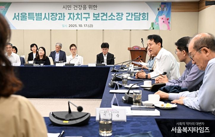 서울복지타임즈 김두화 기자 | 오세훈 서울시장이 17일 오후 12시 서울시청 간담회장(8층)에서 자치구 보건소장들과 ‘건강도시 서울 종합계획- 더 건강한 서울 9988’의 실효성 있는 추진과 서울시민 건강증진을 위한 협력방안을 논의했다.