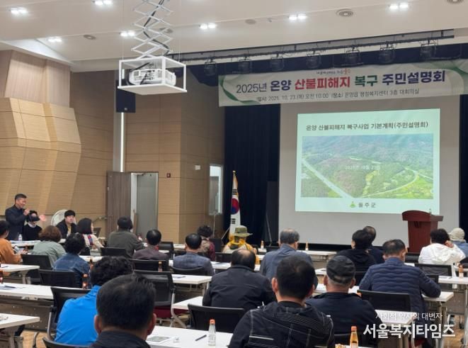 울주군은 온양·언양 산불피해지 복구 기본계획 수립 시 주민들의 의견을 반영하기 위해 지난 21일 언양읍, 23일 온양읍 행정복지센터에서 주민설명회를 개최했다.