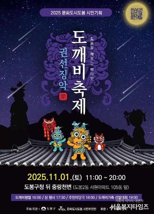 서울복지타임즈 이재연 기자 | 서울 도봉구가 오는 11월 1일, 도봉구청 인근 중랑천변(서원아파트 105동 앞)에서 ‘2025 문화도시도봉 도깨비축제’를 개최한다.