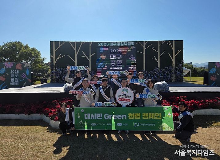 서울복지타임즈 이재연 기자 | 대구공공시설관리공단은 10월 28일 하중도에서 열린 ‘2025 대구정원박람회’ 현장에서 시민과 함께하는 ‘대시민 Green 청렴 캠페인’을 진행했다.