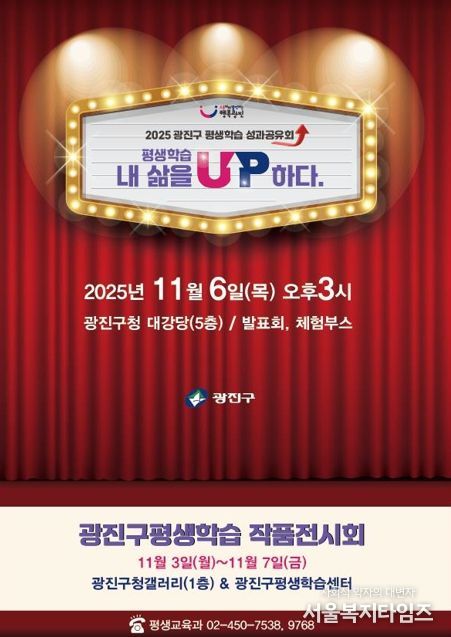 서울복지타임즈 이재연 기자 | 광진구는 11월 3일부터 7일까지 5일간 ‘평생학습, 내 삶을 업(UP)하다’를 주제로 ‘2025 광진구 평생학습 성과공유회’를 개최한다.