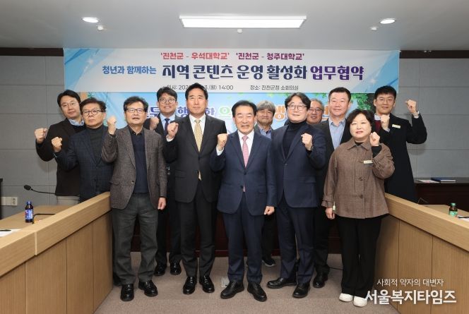 서울복지타임즈 이재연 기자 | 충북 진천군과 우석대학교, 청주대학교는 3일 진천군청에서 ‘진천군 지역 콘텐츠 운영 활성화’를 위한 업무협약을 체결했다고 밝혔다.