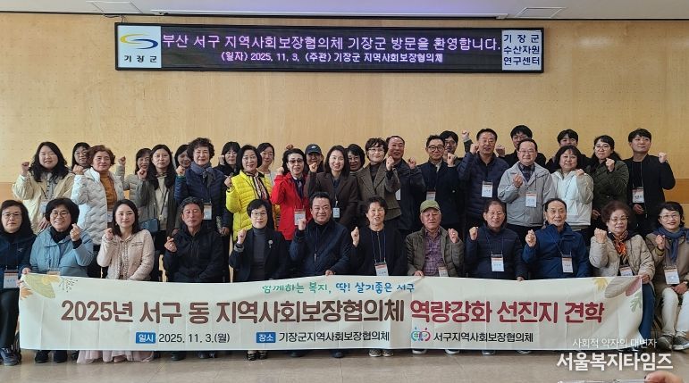 서울복지타임즈 이재연 기자 | 부산 서구지역사회보장협의체(공동위원장: 공한수 서구청장, 강동인 서구노인복지관장)는 지난 11월 3일, ‘2025년 동 지역사회보장협의체 역량강화 선진지 견학’을 실시했다. 이번 견학은 각 동 지역사회보장협의체 위원의 역량 강화를 위해 마련된 것으로, 기장군 지역사회보장협의체를 방문하여 진행됐다.