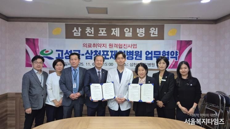 서울복지타임즈 이재연 기자 | 고성군은 11월 6일 삼천포제일병원(원장 김송자)과 의료취약지역 주민의 건강관리를 지원하기 위한 원격협진 업무협약을 체결했다.