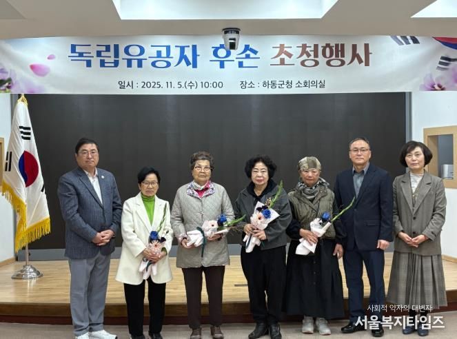 서울복지타임즈 이재연 기자 | 하동군은 지난 5일 하동 출신 독립운동가 후손 5명을 초청해 관내 명소를 탐방하고 선열들의 나라사랑 정신과 민족애를 다시 한번 느껴보는 시간을 가졌다고 밝혔다.