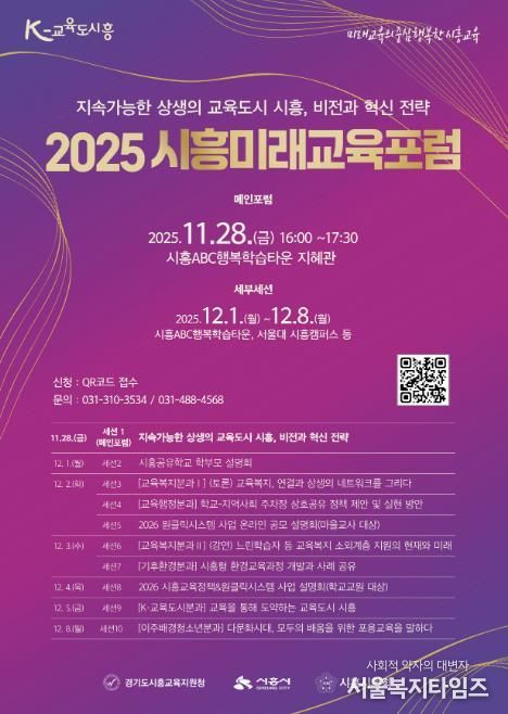 서울복지타임즈 이재연 기자 | 시흥시는 시흥교육지원청, 시흥시의회와 함께 오는 11월 28일부터 12월 8일까지 ‘2025 시흥미래교육포럼’을 진행한다.