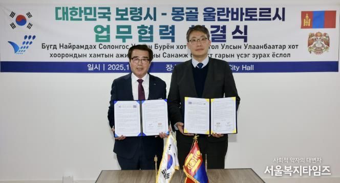서울복지타임즈 이재연 기자 | 보령시는 7일 몽골 울란바토르시와 상호 발전적인 협력관계 증진을 위한 ‘보령시–울란바토르시 우호협력 양해각서(MOU)’를 체결했다.