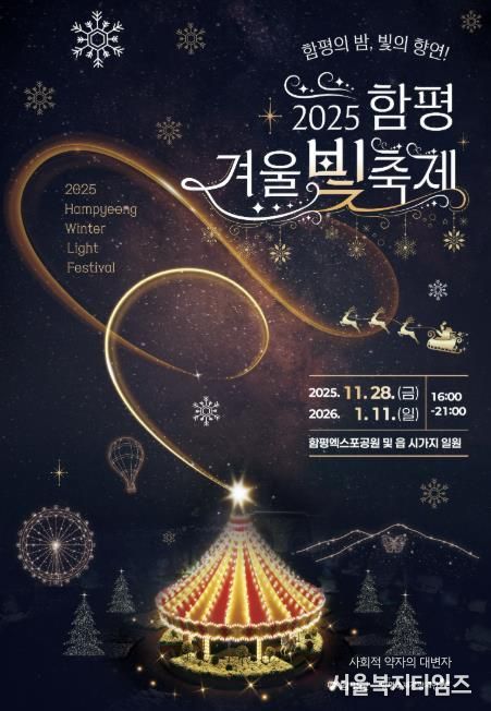 ‘함평 겨울빛축제’는 11월 28일부터 내년 1월 11일까지 45일간 열리며, 축제 범위를 읍 시가지까지 확대해 지역 상권과 연계한 야간 관광형 축제로 개최될 예정이다.