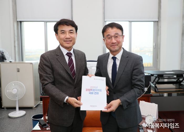 서울복지타임즈 이재연 기자 | 김진태 강원특별자치도지사는 11월 18일 국회를 방문해 한병도(전북 익산시을) 예산결산특별위원장을 비롯해 예결위원인 송기헌(원주을) 국회의원, 박형수(경북 의성‧청송‧영덕‧울진) 국회의원 등 여야 예산결산특별위원들을 차례로 만나 주요 현안사업에 대한 국비 지원의 필요성을 설명했다.
