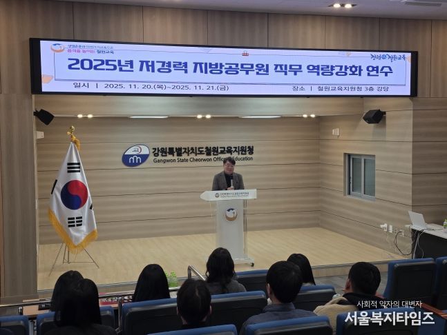 서울복지타임즈 이재연 기자 | 철원교육지원청은 11월 20일부터 21일까지 2일간, 임용된 지 2년 미만의 저연차 지방공무원 16명을 대상으로 현지 맞춤형 직무 역량 강화 연수를 실시한다.