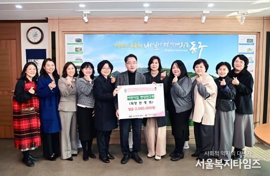 서울복지타임즈 이재연 기자 | 대구 동구 어린이집 현장연구회는 지난 25일, 둔산동 옻골마을에서 개최한 플리마켓 행사에서 모은 수익금 250만원을 동구청에 기탁했다.
