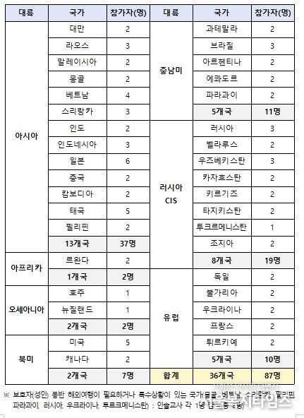 ‘해외 청소년 한국어교육 연수’는 각국의 정규 학교에서 한국어를 배우는 학생들이 한국에 대한 이해를 넓히고 한국어 학습 동기를 고취할 수 있도록 2019년부터 매년 운영되는 과정이다. 올해는 르완다·벨라루스·튀르키예 등 처음 참여하는 국가들을 포함해 총 36개국에서 인솔교사 포함 95명이 참석했다.