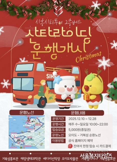 이벤트 운영 기간 버스 내부에는 루돌프ㆍ산타ㆍ트리 등 크리스마스를 상징하는 소품과 캐럴 음원, 포토존이 배치돼 따뜻한 연말 감성을 느낄 수 있도록 구성했다. 특히 야간 시간대에는 거북섬과 오이도 일대의 야간 경관과 어우러져, 겨울 바다와 조명이 조화를 이루는 특별한 승차 경험을 제공할 예정이다.