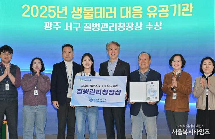 서울복지타임즈 이재연 기자 | 광주광역시 서구가 ‘2025 생물테러 대응 유공기관 포상’에서 우수기관으로 선정돼 질병관리청장상을 수상했다고 9일 밝혔다.
