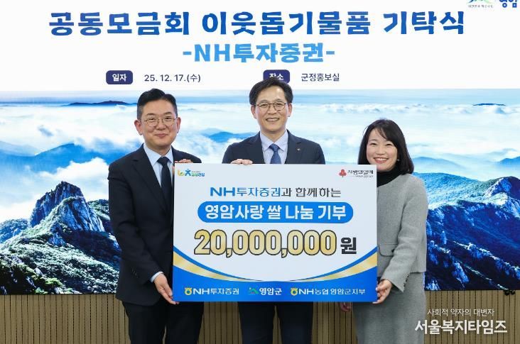 기탁식에서 최홍석 NH투자증권 ESG추진부장은 “이번 기부는 NH농협영암군지부의 요청으로 추진됐고, NH투자증권의 사회공헌 활동과 쌀 소비 촉진의 하나로 진행됐다.